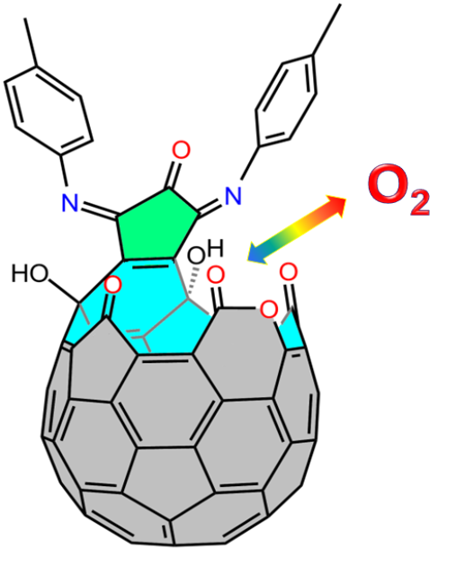 甘良兵課題組的研究結(jié)果表明開孔富勒烯在遞氧材料方面有潛在應(yīng)用價值。許多醫(yī)療手段,例如組織體外培養(yǎng)、活性氧物種(Reactive oxygen species, ROS)殺菌和腫瘤的光動力治療(Photodynamic therapy, PDT)中均需要充足的氧氣供應(yīng),目前文獻報道較多的遞氧材料主要有修飾的血紅素、碳氟化合物和金屬過氧化物等。開孔富勒烯作為分子納米材料為遞氧材料提供了新的研究方向。