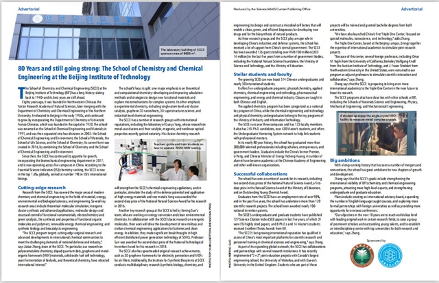 化學(xué)與化工學(xué)院的前身可追溯到1940年創(chuàng)立的延安自然科學(xué)院化工系和1920年建校的中法大學(xué)化學(xué)系。經(jīng)過(guò)學(xué)科的多次拆分和重組,建立了目前的化學(xué)與化工學(xué)院。學(xué)院現(xiàn)有專任教師127人;長(zhǎng)江學(xué)者獎(jiǎng)勵(lì)計(jì)劃特聘教授4人,國(guó)家杰出青年科學(xué)基金獲得者5人,國(guó)家“萬(wàn)人計(jì)劃”科技創(chuàng)新領(lǐng)軍人才1人,百千萬(wàn)工程國(guó)家級(jí)人選3人,國(guó)家優(yōu)秀青年基金獲得者等四青人才10人,教育部跨/新世紀(jì)優(yōu)秀人才9人,教育部長(zhǎng)江學(xué)者創(chuàng)新團(tuán)隊(duì)1個(gè)。形成了包括杰青/長(zhǎng)江、優(yōu)青等在內(nèi)的一支力量十足的高水平教學(xué)、科師資隊(duì)伍。學(xué)院現(xiàn)有化學(xué)和化學(xué)工程與技術(shù)兩個(gè)一級(jí)學(xué)科。化學(xué)學(xué)科是我?!疤厣砜啤睂W(xué)科群中重點(diǎn)建設(shè)的學(xué)科之一,ESI國(guó)際學(xué)科最新排名為全球第199位,進(jìn)入ESI全球?qū)W科排名前2‰(1.6 ‰ )?;W(xué)科在QS國(guó)際排名位列201-250名, 全國(guó)第四輪學(xué)科評(píng)估A類學(xué)科(并列第8)?;瘜W(xué)與化工學(xué)院的學(xué)科研究一直秉承學(xué)校的延安根歷史,致力于面向國(guó)防和國(guó)家重大需求,開(kāi)展化學(xué)/化工的前沿原創(chuàng)性及產(chǎn)學(xué)研結(jié)合研究。