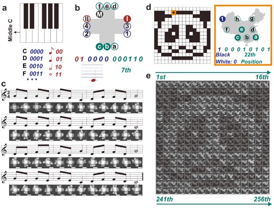 該方法實現(xiàn)了加密術與隱寫術的整合,采用一條長7000堿基左右的骨架鏈可實現(xiàn)約700位的理論密鑰長度,遠超經(jīng)典AES算法的強度。而通過對DNA折紙不同區(qū)域位點的定義以及DNA折紙間的特異性識別,該系統(tǒng)還可實現(xiàn)完整性保護和訪問控制的功能。該團隊采用該系統(tǒng)進行了包括文本、音符、圖片等多種形式的信息傳遞,并模擬戰(zhàn)爭環(huán)境實現(xiàn)了對戰(zhàn)役時間地點信息的保密傳遞。該DNA加密系統(tǒng)為信息安全的發(fā)展提供了一種具有巨大潛力的生物分子解決方案。