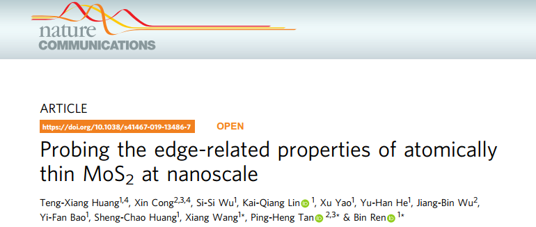 該工作通過校內(nèi)外課題組緊密合作,在任斌教授、譚平恒研究員(中科院半導(dǎo)體研究所)和王翔博士共同指導(dǎo)下完成。實驗部分主要由黃騰翔博士(第一作者,已畢業(yè)化學(xué)系博士生)完成,電子能帶結(jié)構(gòu)與光譜理論計算由譚平恒研究員課題組從鑫博士生(共同第一作者)完成,吳思思、林楷強、姚旭、何玉韓、吳江濱、包一凡、黃聲超等參與了實驗與討論。研究工作得到科技部、國家自然科學(xué)基金委員會、福建省自然科學(xué)基金和中國博士后基金資助。