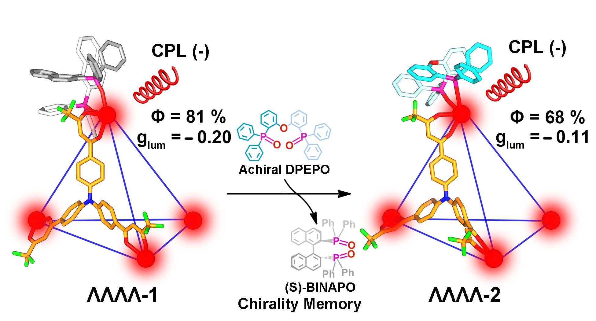 圖1.手性稀土四面體籠的手性記憶效應(yīng)和圓偏振發(fā)光