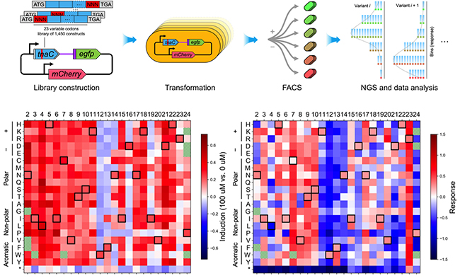圖1. 本論文建立的FACS-seq高通量分析流程及TnaC深度突變掃描圖譜