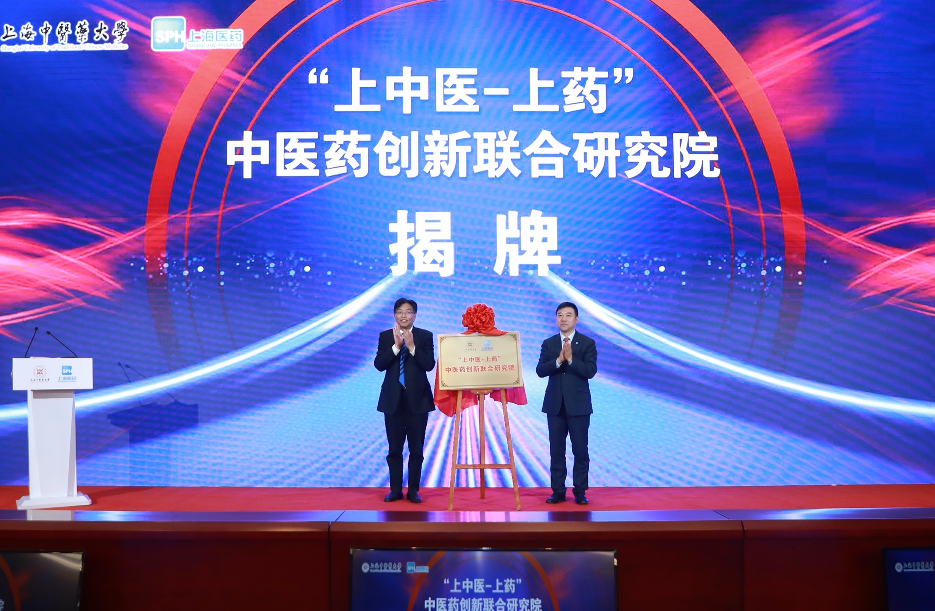 上海中醫(yī)藥大學(xué)黨委書記曹錫康與上海醫(yī)藥集團(tuán)黨委副書記、上海醫(yī)藥副總裁趙勇,為雙方聯(lián)合籌辦的“上中醫(yī)-上藥”中醫(yī)藥創(chuàng)新聯(lián)合研究院揭牌。