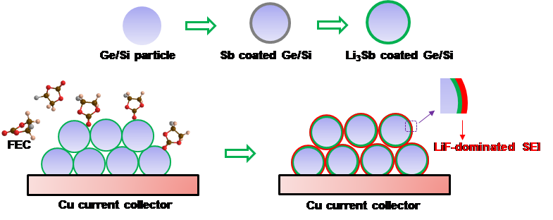 合金負(fù)極具有高比容量是目前電池的研究熱點(diǎn)。然而,充放電過(guò)程中伴隨的巨大體積變化仍是限制合金負(fù)極材料商業(yè)化的主要因素。研究表明,SEI膜可有效緩解商品化石墨電極表面與電解液的反應(yīng),對(duì)于電極的穩(wěn)定性起到舉足輕重的作用。而在合金負(fù)極表面,由于更加劇烈的體積變化,初始的SEI穩(wěn)定性達(dá)不到要求。因此,如何設(shè)計(jì)更穩(wěn)定、更致密、更薄的SEI對(duì)于提升合金電極材料性能的重要性不言而喻。