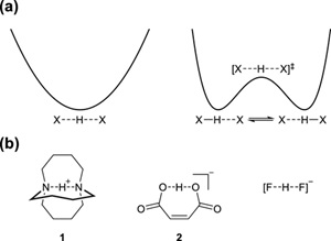 圖1. (a)氫鍵的對稱性;(b)對稱氫鍵示例。