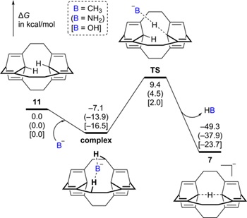 圖4. 由烴類前體11轉(zhuǎn)化為碳負離子7的勢能面。