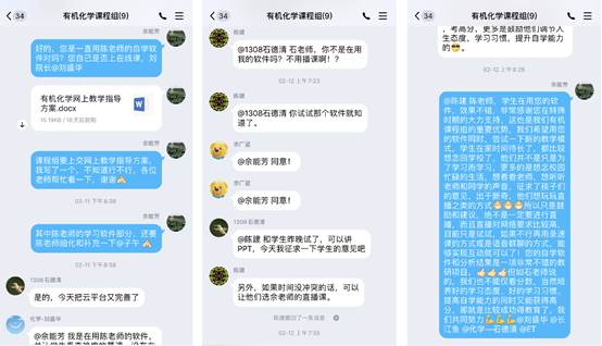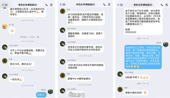 為保證華中師范大學(xué)化學(xué)學(xué)院《有機(jī)化學(xué)》課程組網(wǎng)上教學(xué)工作順利進(jìn)行,《有機(jī)化學(xué)》授課教師佘能芳在網(wǎng)上開學(xué)前積極聯(lián)系課程組老師傳達(dá)網(wǎng)絡(luò)教學(xué)具體安排,并結(jié)合課程教學(xué)的實(shí)際情況,制定出臺《有機(jī)化學(xué)網(wǎng)上教學(xué)指導(dǎo)方案》等文件。課程組老師們多次利用QQ群在線上進(jìn)行備課研討、交流教學(xué)心得等,共同貫徹“以學(xué)生的發(fā)展為中心”的教學(xué)理念。