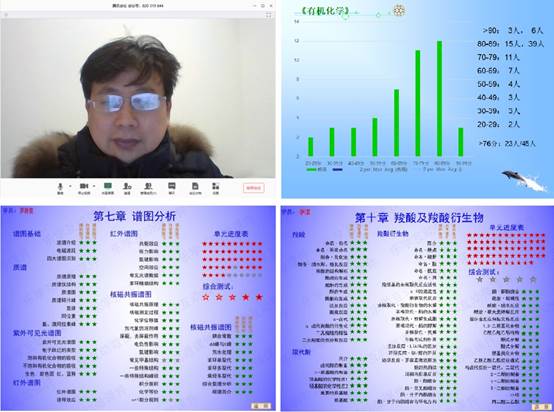疫情期間,《有機(jī)化學(xué)》課堂授課教師彭浩指導(dǎo)學(xué)生們合理運(yùn)用《基礎(chǔ)有機(jī)化學(xué)自學(xué)教程》互動微課件,進(jìn)行自學(xué)并加以練習(xí)。此外,彭老師利用線上平臺對有疑問的學(xué)生進(jìn)行一對一輔導(dǎo),目前大部分同學(xué)已提前于教學(xué)進(jìn)度要求完成了第七章教學(xué)軟件的學(xué)習(xí)任務(wù),從后續(xù)的測試情況來看,大部分同學(xué)已掌握了第七章的主要知識。