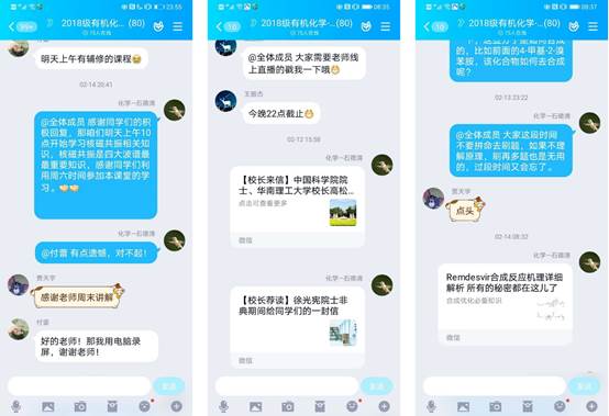 《有機(jī)化學(xué)》課程教師石德清堅(jiān)持“一切以學(xué)生為中心”、努力打造好“讓學(xué)生滿意”的《有機(jī)化學(xué)》課堂。石老師在上學(xué)期結(jié)束時(shí)便上傳了本學(xué)期的部分課間供同學(xué)們假期預(yù)習(xí),同時(shí)在本學(xué)期開學(xué)之前將剩余課件及學(xué)習(xí)內(nèi)容上傳至云平臺,充分發(fā)揮學(xué)生自主性。應(yīng)同學(xué)們要求,石老師課堂率先采用“騰訊會議”軟件,開展網(wǎng)絡(luò)直播課程的教學(xué)工作,深受學(xué)生好評。為保證學(xué)習(xí)的連貫性,石老師利用周末主動增加一堂長達(dá)兩小時(shí)的波譜課程,吸引了不少其他班級同學(xué)旁聽。此外,為激發(fā)同學(xué)們學(xué)習(xí)《有機(jī)化學(xué)》的興趣,石老師為同學(xué)們分享了疫情期間廣受關(guān)注的新藥“瑞德西韋”的合成路線和反應(yīng)機(jī)理。同時(shí),老師及時(shí)向同學(xué)們傳送學(xué)校的通知安排,堅(jiān)定同學(xué)們戰(zhàn)勝疫情的必勝信心。