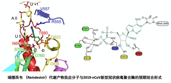 新型冠狀病毒在入侵細(xì)胞后,便開始大量復(fù)制;而病毒的RNA依賴的RNA聚合酶(RdRp,也被稱為nsp12)在病毒的遺傳物質(zhì)——RNA的合成過程中起著至關(guān)重要的作用。以RNA聚合酶為核心,病毒會(huì)巧妙地利用其它輔助因子(如nsp7/nsp8等)組裝一臺(tái)高效的RNA合成機(jī)器,進(jìn)行自我復(fù)制。RNA聚合酶作為這臺(tái)復(fù)制機(jī)器的核心部件,是最重要的抗病毒藥靶之一。破壞該核心設(shè)備的功能,就能阻止病毒的復(fù)制,最終達(dá)到治療的目的。而瑞德西韋恰恰就是一個(gè)靶向RNA聚合酶的前藥,當(dāng)藥物進(jìn)入人體,通過代謝后,其最終產(chǎn)物就直接靶向抑制病毒的RNA聚合酶。2020年1月25日,蔣華良院士和饒子和院士領(lǐng)銜的上??萍即髮W(xué)免疫化學(xué)研究所與中國(guó)科學(xué)院上海藥物研究所抗新冠病毒聯(lián)合應(yīng)急攻關(guān)團(tuán)隊(duì),通過藥物篩選發(fā)現(xiàn)了30種可能具有抗新冠病毒效用的藥物或活性天然產(chǎn)物,其中就包含瑞德西韋。最近有報(bào)道稱,國(guó)外醫(yī)療機(jī)構(gòu)對(duì)一名新冠肺炎重癥患者在同情用藥的原則下使用了瑞德西韋,該患者病情迅速緩解。因此,瑞德西韋被認(rèn)為是一個(gè)在新冠肺炎的治療中頗具前景的臨床藥物。目前,瑞德西韋臨床試驗(yàn)已在中國(guó)開展,由中日友好醫(yī)院、中國(guó)醫(yī)學(xué)科學(xué)院藥物研究所牽頭,在武漢金銀潭醫(yī)院等多家抗疫一線醫(yī)院中進(jìn)行,計(jì)劃入組761例患者,結(jié)果預(yù)計(jì)在4月27日公布。但是,由于缺乏新型冠狀病毒RNA聚合酶的三維結(jié)構(gòu)信息,瑞德西韋如何精確靶向病毒RNA聚合酶的機(jī)制尚不明確,這是當(dāng)前針對(duì)該靶點(diǎn)開展更有效的抗病毒藥物開發(fā)及應(yīng)用的重要障礙之一。