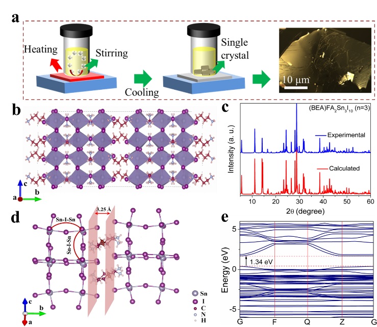 圖1 單晶(BEA)FA2Sn3I10的合成,晶體結構及第一性原理計算