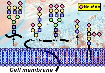 唾液酸糖鏈在細(xì)胞膜表面分布眾多,如同一層“糖被”覆蓋在細(xì)胞表面。唾液酸通常位于糖鏈的最外端,這種特殊的位置及其廣泛分布性,使得唾液酸糖鏈在病毒感染,免疫激活,癌癥發(fā)生、發(fā)展和遷移等諸多生理過(guò)程中,發(fā)揮著至關(guān)重要的作用。唾液酸糖蛋白已被廣泛用作癌癥的臨床生物標(biāo)志物。然而,唾液酸糖鏈的鑒定及分析異常復(fù)雜,迫切需要全新、高效的材料學(xué)體系支撐,以攻克復(fù)雜生物樣本中唾液酸糖肽富集和分離的難題,推動(dòng)糖蛋白組學(xué)的全面發(fā)展。