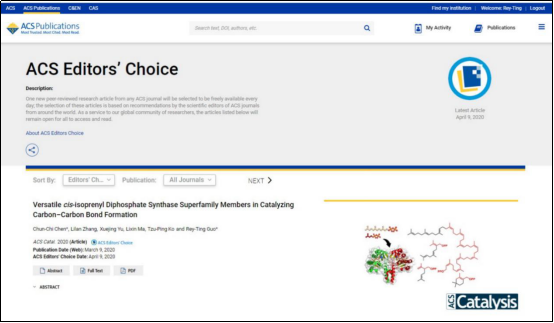 圖1 文章獲選為2020年4月9日的 ACS Editors'Choice