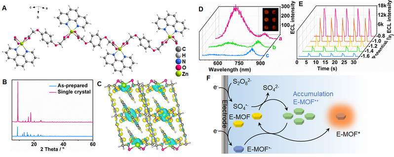 圖1.電活性金屬有機框架材料的晶體結構與水相自增強電致化學發(fā)光