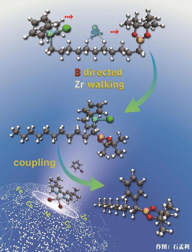 為此,姜超課題組實現(xiàn)了烷基鋯硼試劑在交叉偶聯(lián)反應中的廣譜性應用,發(fā)現(xiàn)并驗證了硼酸酯對鋯試劑“鏈行走”遠程遷移的導向控制過程。為鋯化學領域選擇性遠程遷移,遠端活化化學鍵提供了新思路,為硼化學領域快速構建手性烷基硼試劑提供了新方法。