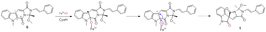 圖2. 推導(dǎo)的CyaH催化氧化吲哚螺環(huán)形成機(jī)理