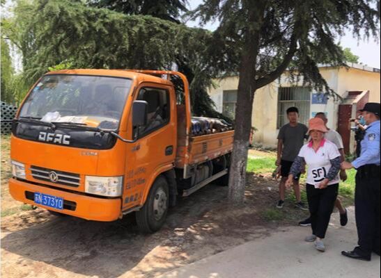 亞星高速公路儀器有限公司院內(nèi)存放大量的氧氣、二氧化碳?xì)怏w瓶
