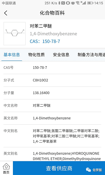 3、全球三大化合物數(shù)據(jù)庫之一,于2018年11月獲得國家級“大數(shù)據(jù)科技傳播獎-優(yōu)秀團體創(chuàng)新獎”。與化學(xué)加網(wǎng)、化學(xué)加微信小程序同步更新,數(shù)據(jù)精準,且已關(guān)聯(lián)上各產(chǎn)品主流供應(yīng)商。化學(xué)加,匯聚產(chǎn)業(yè)資源,為你加分!