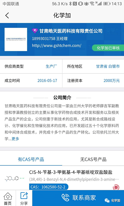 1、化學(xué)加(www.m.yqxsz.com),聚焦精細化工醫(yī)藥日化領(lǐng)域。搜化合物,搜商家,發(fā)求購,用專業(yè)的化學(xué)加搜索。會員企業(yè)自助入駐,已經(jīng)有460萬條產(chǎn)品供需,2.7萬家商戶,可查4000萬個化合物、1.2億條數(shù)據(jù)。