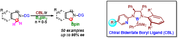圖一、CBL/Ir催化的環(huán)狀胺的不對(duì)稱碳?xì)滏I硼化反應(yīng)
