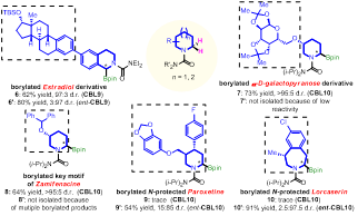 圖二、CBL/Ir催化的連有生物活性分子結(jié)構(gòu)的環(huán)狀胺的后期碳?xì)滏I硼化