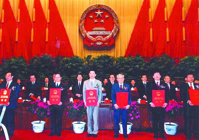 ②蔣錫夔(前排右三)在2002年度國(guó)家科技獎(jiǎng)勵(lì)大會(huì)上