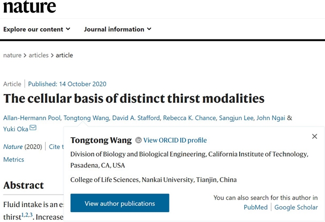 【2】Pool, A., Wang, T., Stafford, D. et al. The cellular basis of distinct thirst modalities. Nature (2020). https://doi.org/10.1038/s41586-020-2821-8