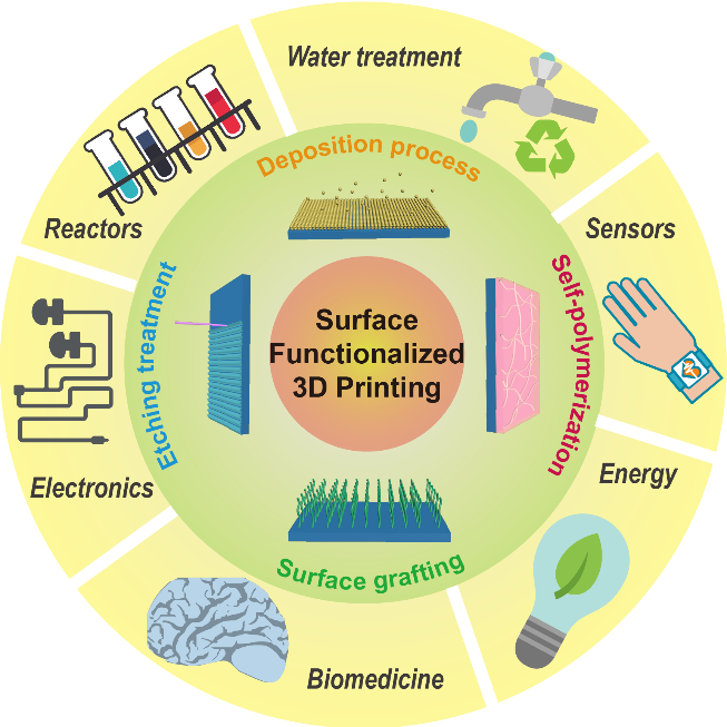圖1 表面功能化3D打印及其應(yīng)用示意圖