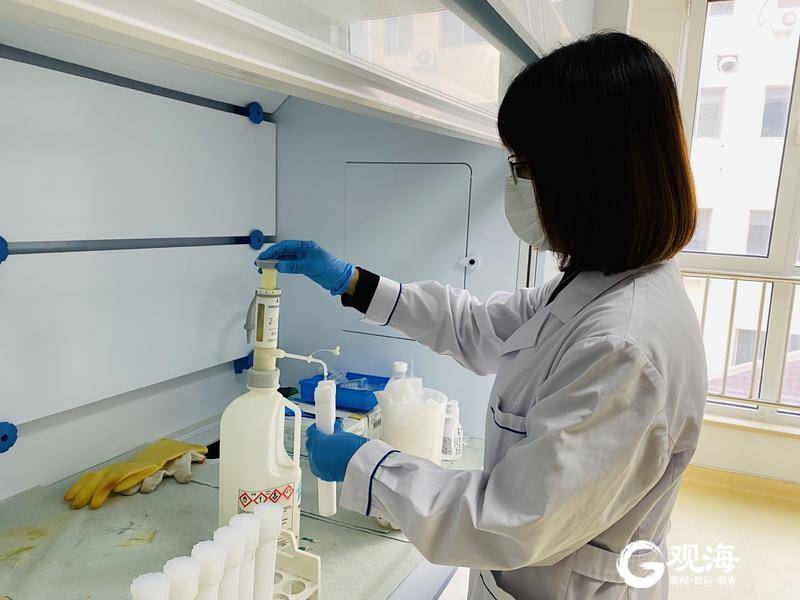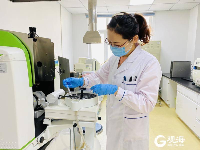 檢測(cè)人員將樣品溶液放入原子光譜儀。