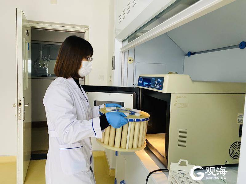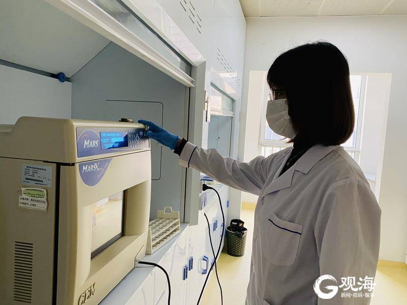 檢測(cè)人員將消解罐放入微波加速反應(yīng)系統(tǒng)。