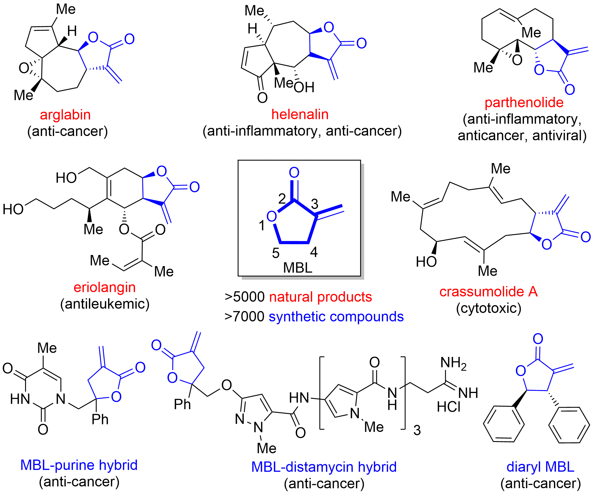 圖1.含有α-亞甲基-g-丁內酯結構單元的一些重要天然產物和活性分子