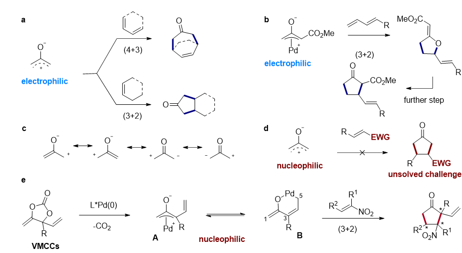 圖1:氧烯丙基正離子及相關(guān)物種的環(huán)加成反應(yīng)的背景介紹