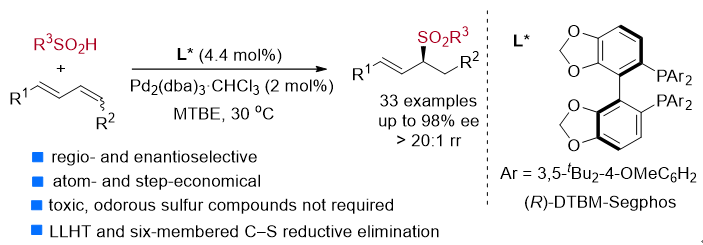 圖2: 鈀催化的1,3-的氫砜化反應(yīng)制備手性烯丙基砜