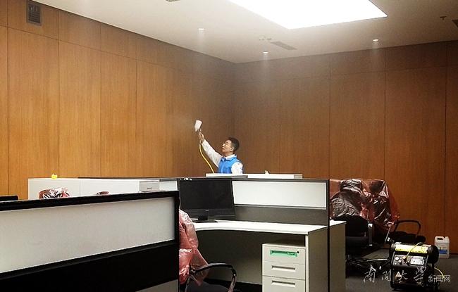 團(tuán)隊(duì)成員正在除甲醛施工