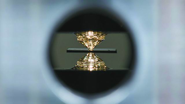 一種氫、硫和碳的化合物被壓在兩顆鉆石之間,在室溫下實現(xiàn)超導(dǎo)。