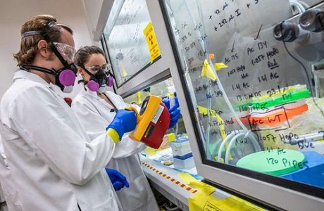 勞倫斯·伯克利國家實驗室的化學家正在檢查锿-254的實驗室樣品。