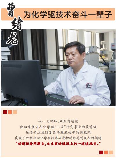 曹緒龍?jiān)O(shè)計(jì)優(yōu)化了適應(yīng)勝利油田不同油藏條件的驅(qū)油用聚合物,形成高溫高鹽油藏聚合物驅(qū)油技術(shù)。他還攻克了無(wú)堿條件下界面張力難以達(dá)到超低的國(guó)際性難題,配套形成了無(wú)堿二元復(fù)合驅(qū)油技術(shù),提高采收率10.2個(gè)百分點(diǎn),成為勝利油田大幅度提高采收率的撒手锏技術(shù)。