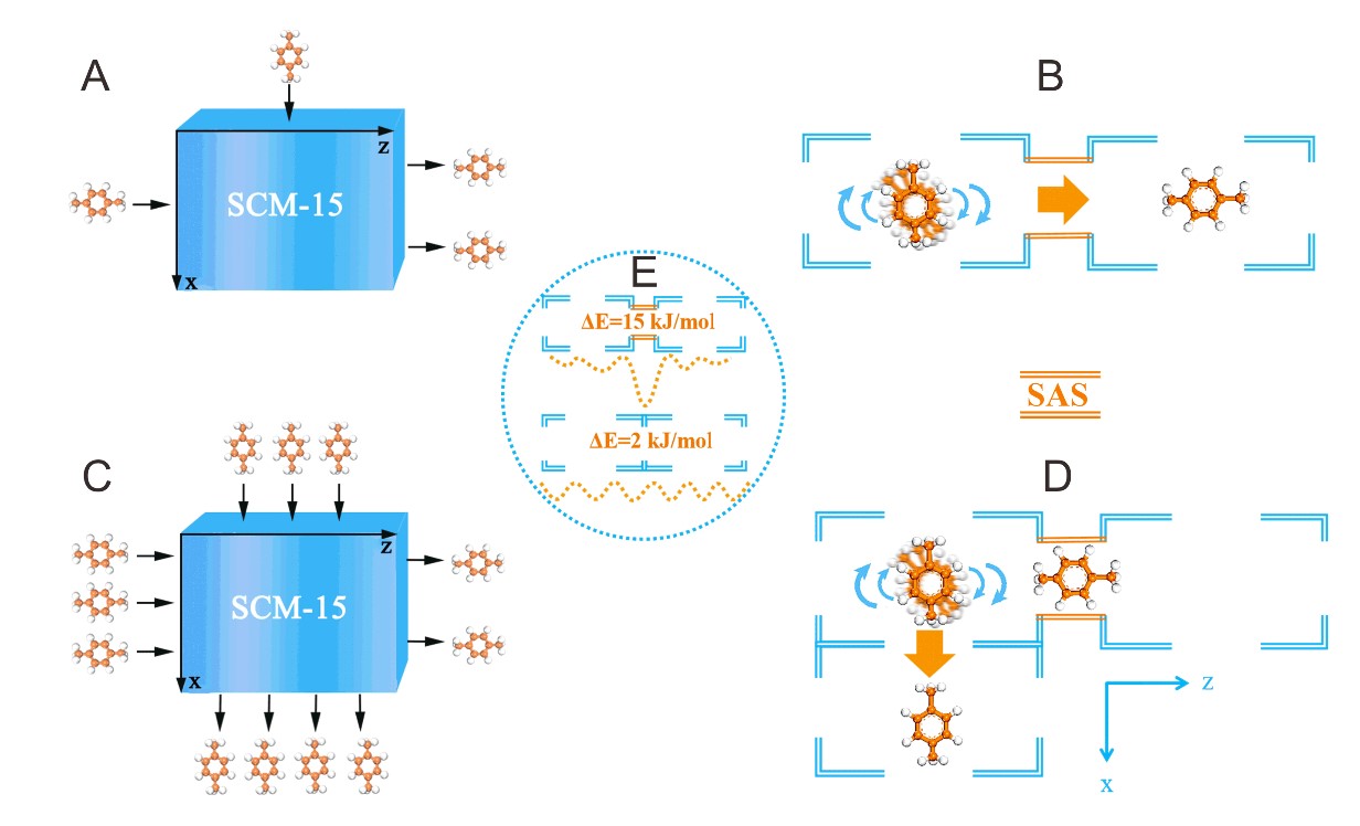 不同濃度二甲苯在連續(xù)性交叉孔SCM-15分子篩中的擴(kuò)散機(jī)理圖