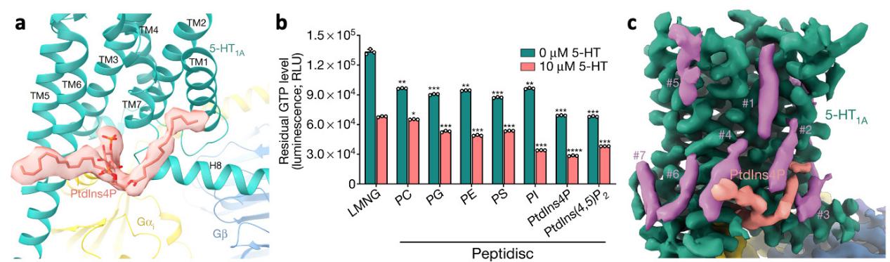 圖2. 5-HT1A受體的磷脂和膽固醇調(diào)節(jié)
