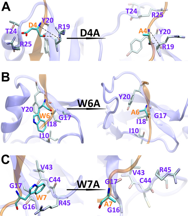 圖3:APP 9-mer雙突變D1AD2N引起的結(jié)合復(fù)合物結(jié)構(gòu)變化