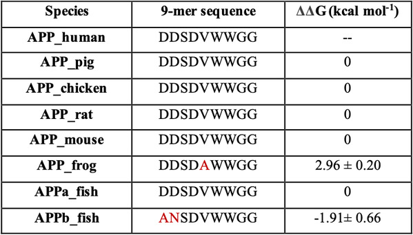 表1:針對其他物種的相應(yīng)APP 9-mer序列的突變