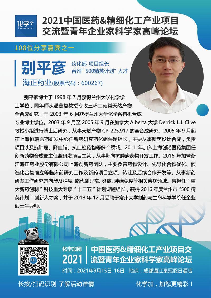 6.國家杰青、中科院寧波材料技術(shù)與工程研究所博導(dǎo)葛子義研究員;7.廣東省青聯(lián)委員、拓普基因科技(廣州)有限責(zé)任公司董事長由曉斌博士;8.“泰山學(xué)者”、中國海洋大學(xué)醫(yī)藥學(xué)院、青島海洋生物醫(yī)藥研究院博導(dǎo)秦沖教授;9.中國科學(xué)院新疆理化技術(shù)研究所博導(dǎo)馬鵬程研究員;10.滄州維智達美制藥有限公司董事總經(jīng)理瞿鑫;11.成都分迪藥業(yè)有限公司董事長、CEO蔡鑫;12.重慶華森制藥(股票代碼:002907)藥物研究院沈浩院長;13.化學(xué)與精細化工廣東省實驗室特聘研究員董正亞;14.蘇州青云瑞晶生物科技有限公司創(chuàng)始人、CEO 劉磊峰博士;15.微反應(yīng)器應(yīng)用專家、浙江工業(yè)大學(xué)藥學(xué)院夏春年副教授;16.國家杰青、華東理工大學(xué)博導(dǎo)劉培念教授;17.寧波美諾華藥業(yè)股份(股票代碼:603538)高級顧問郭均相;18.山東微井化工科技股份有限公司董事長丁全有;19.清華大學(xué)化工系助理研究員鄧建博士;20.杭州秀川科技聯(lián)合創(chuàng)始人、首席技術(shù)官張文武博士;21.中國化學(xué)會理事、電子科技大學(xué)博導(dǎo)張亞剛教授;22.“臺州500精英計劃”人才、海正藥業(yè)(股票代碼:600267)上海新藥研究所藥化部項目組長別平彥博士;23.渤溢基金合伙人馬嘯;24.溫氏資本高級投資總監(jiān)、原松禾資本董事副總經(jīng)理何予原;25.上海西浦醫(yī)藥科技、甘肅博克斯生物技術(shù)董事長秦勇博士;26.蘭州大學(xué)化學(xué)化工學(xué)院董正平教授;27.上?;莺突律锟萍加邢薰径麻L馬兵博士;28.廣東東陽光藥業(yè)藥物化學(xué)總監(jiān)、抗感染部長、抗感染新藥研發(fā)國家重點實驗室首席研究員任青云博士;29.新疆科靈實驗室工程技術(shù)有限公司董事長劉建民;30.西華大學(xué)理學(xué)院副院長王周玉教授;31.上海化工研究院技術(shù)開發(fā)中心常務(wù)副主任、同位素所副所長、生物醫(yī)藥檢測中心主任雷雯博士;32.成都百裕制藥股份首席藥物化學(xué)總監(jiān)魏用剛博士;33.首批江西省委“雙千計劃”領(lǐng)軍人才、江西師范大學(xué)嚴楠副教授;34.四川省“QR計劃”專家、四川夏派森醫(yī)藥科技總經(jīng)理劉建余博士;35.成都凡諾西生物醫(yī)藥科技董事長劉曉宇博士;36.深圳瑞德林生物技術(shù)有限公司董事長劉建;37.上海交通大學(xué)化學(xué)化工學(xué)院特別研究員張書宇;38.常州大學(xué)環(huán)境與安全工程學(xué)院院長張躍教授;39.武漢智化科技有限公司創(chuàng)始人、CEO夏寧博士;40.北京伊諾凱科技有限公司董事、高級質(zhì)量顧問、和邁生物技術(shù)公司中國總經(jīng)理黃文華博士;41.蘭州大學(xué)化學(xué)化工學(xué)院博導(dǎo)肖建喜教授;42.杭州精進科技有限公司董事長孔桂昌;43.西華大學(xué)制藥工程專業(yè)楊羚羚副教授;44.大連化學(xué)物理研究所堯超群研究員;45.四川省“QR計劃”專家、成都苑東生物制藥股份首席科學(xué)家李曉迅博士;46.深圳銳灃科技有限公司董事長馮玉林博士;47.四川奧邦藥業(yè)研發(fā)總監(jiān)王科;48.四川大學(xué)化學(xué)學(xué)院博導(dǎo)余達剛教授;49.重慶大學(xué)藥學(xué)院博導(dǎo)、特聘研究員馮璋;50.國家“QR計劃”專家、海創(chuàng)藥業(yè)股份有限公司董事長陳元偉博士;51.上海皓元醫(yī)藥股份(股票代碼:688131)董事長鄭保富博士;52.成都華健未來科技有限公司董事長姬建新博士;53.四川制藥制劑有限公司研究院曾裕建院長;54.成都賽璟生物醫(yī)藥科技副總經(jīng)理、四川大學(xué)華西藥學(xué)院蘭軻副教授;55.四川大學(xué)華西醫(yī)院柯博文教授;56.西北工業(yè)大學(xué)博導(dǎo)趙軍鋒教授;57.四川科瑞德凱華制藥藥物研究院傅霖院長;58.四川海思科制藥有限公司楊家亮副總經(jīng)理;59.四川華法美質(zhì)量法規(guī)和新產(chǎn)品開發(fā)總監(jiān)李澤瓊;60.海思科醫(yī)藥集團股份有限公司新藥化學(xué)一部總監(jiān)張晨博士;61.硅寶科技(股票代碼:300019)董事長王有治;62.圣諾生物(股票代碼:688117)董事長文永均;63.倚世節(jié)能科技(上海)有限公司CEO阮紅正;……
