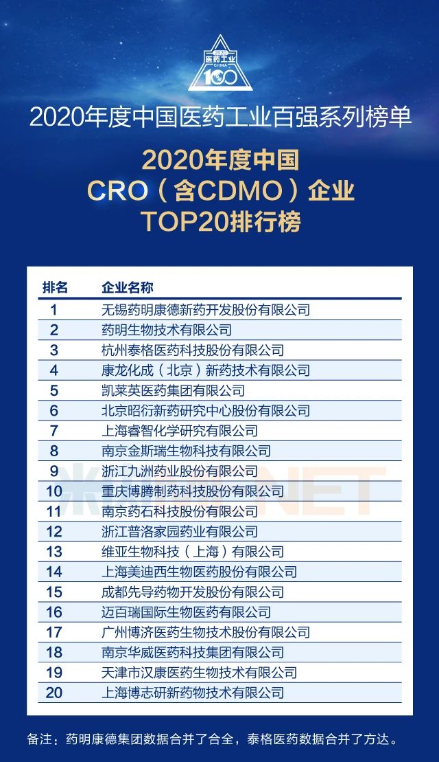2020年度中國醫(yī)藥工業(yè)百強系列榜單發(fā)布:化藥企業(yè)TOP100、CRO/CDMO企業(yè)TOP20