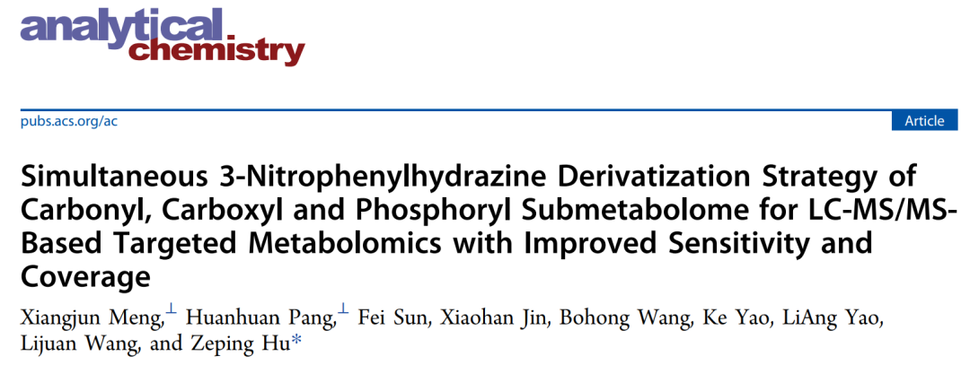 2021年7月16日,清華大學(xué)藥學(xué)院胡澤平課題組在《分析化學(xué)》(Analytical Chemistry)期刊在線發(fā)表題為《基于3-硝基苯肼同步衍生化羰基、羧基和磷酸基亞代謝組策略的超靈敏、寬覆蓋LC-MS/MS靶向代謝組學(xué)方法》(Simultaneous 3-Nitrophenylhydrazine Derivatization Strategy of Carbonyl, Carboxyl and Phosphoryl Submetabolome for LC-MS/MS Based Targeted Metabolomics with Improved Sensitivity and Coverage)的文章,通過采用 3-NPH衍生化策略,建立了基于 LC-MS/MS 的代謝組學(xué)分析方法,該方法同時靶向含羰基、羧基和磷酸基的代謝物,具有超高的檢測靈敏度和廣泛的代謝物覆蓋范圍。此外,該方法還可以簡化細(xì)胞中糖酵解、三羧酸循環(huán)和戊糖磷酸途徑的代謝流分析。代謝是生命活動的基礎(chǔ),代謝異常與許多疾病的發(fā)生發(fā)展有著密切的關(guān)系。代謝組學(xué)是闡明代謝調(diào)控和揭示疾病機(jī)制的有力工具,在理解疾病機(jī)制、發(fā)現(xiàn)治療靶標(biāo)及精準(zhǔn)醫(yī)療中發(fā)揮了重要作用。