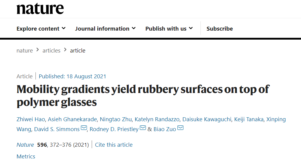 左彪(通訊作者),2004年-2014年,就讀于浙江理工大學(xué),先后獲得學(xué)士、碩士和博士學(xué)位。紡織科學(xué)與工程博士畢業(yè)后,留校任教。期間,分別在日本九州大學(xué)和美國(guó)普林斯頓大學(xué)進(jìn)行了為期3個(gè)月和2年的學(xué)術(shù)訪問,開展學(xué)術(shù)研究。從2010年起,長(zhǎng)期從事高分子表面微結(jié)構(gòu)和動(dòng)力學(xué)的高分子物理基礎(chǔ)研究,旨在從分子層面上揭示表界面高分子奇異動(dòng)力學(xué)的機(jī)制和機(jī)理,發(fā)展界面高分子物理新概念,實(shí)現(xiàn)對(duì)高分子材料界面機(jī)械力學(xué)、黏彈性和摩擦等行為的深入認(rèn)識(shí)和控制。以通訊作者/第一作者在Nature,Phys. Rev. Lett.,ACS Nano,J. Phys. Chem. Lett.,Macromolecules等重要學(xué)術(shù)刊物上發(fā)表論文30余篇。