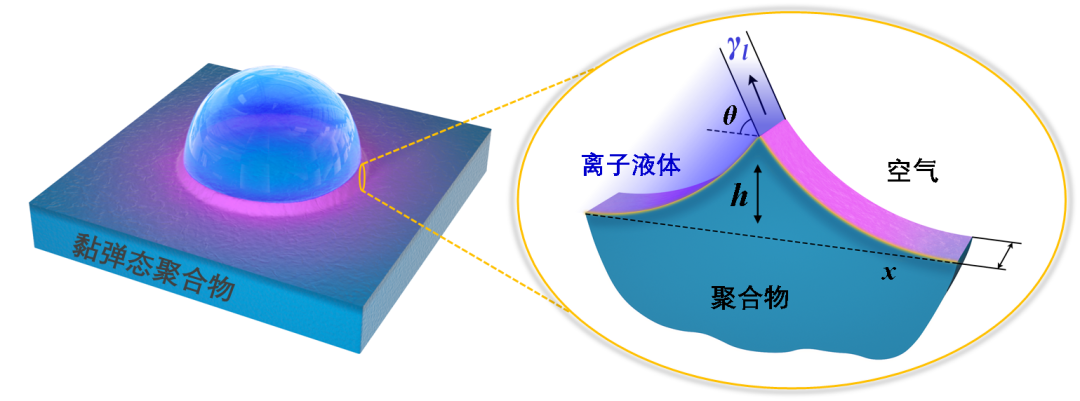 圖1 液滴表面張力誘導(dǎo)聚合物表面發(fā)生形變的示意圖