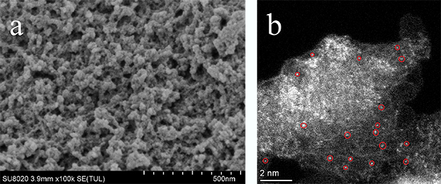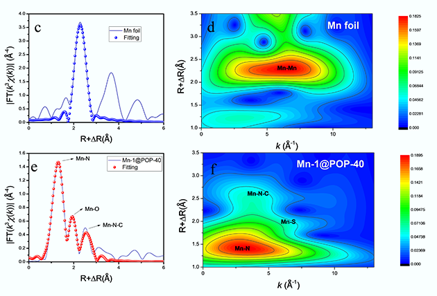 研究發(fā)現(xiàn),通過(guò)錨定活性組分在聚合物框架之中,有效降低了活性組分之間的催化氧化分解,實(shí)現(xiàn)了催化劑的重復(fù)利用。球差透射電鏡和同步輻射表征證明了單位點(diǎn)錳催化劑的存在。