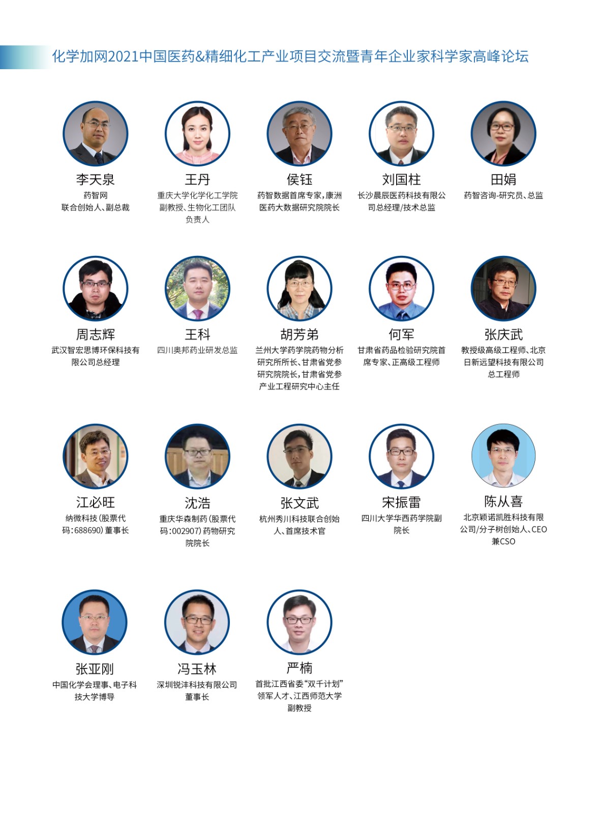 【下周一開幕】化學加網(wǎng)2021中國醫(yī)藥精細化工產(chǎn)業(yè)項目交流暨青年企業(yè)家科學家高峰論壇大會議程、分享嘉賓及合作單位一覽