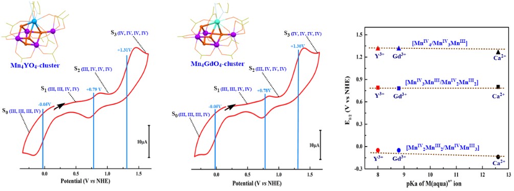圖2.仿生Mn4XO4-簇合物的氧化-還原電位及其與非錳金屬離子的Lewis酸堿性的關(guān)系