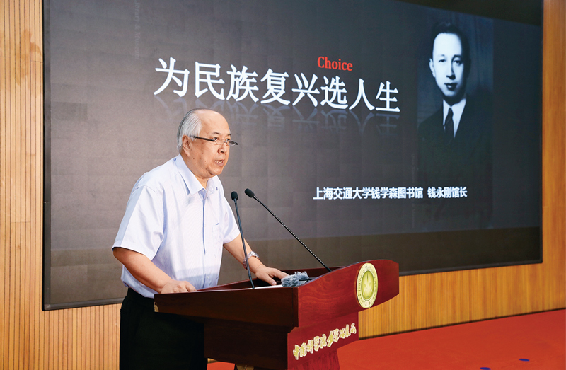 2021年7月15日,中國(guó)科學(xué)院在該院力學(xué)研究所為首個(gè)弘揚(yáng)科學(xué)家精神示范基地授牌,并為以錢學(xué)森、趙九章、施雅風(fēng)等老科學(xué)家命名的首批三支科技攻關(guān)突擊隊(duì)授旗。圖為活動(dòng)現(xiàn)場(chǎng),錢學(xué)森之子錢永剛講述錢學(xué)森的五次人生選擇。 新華社記者 金立旺/攝